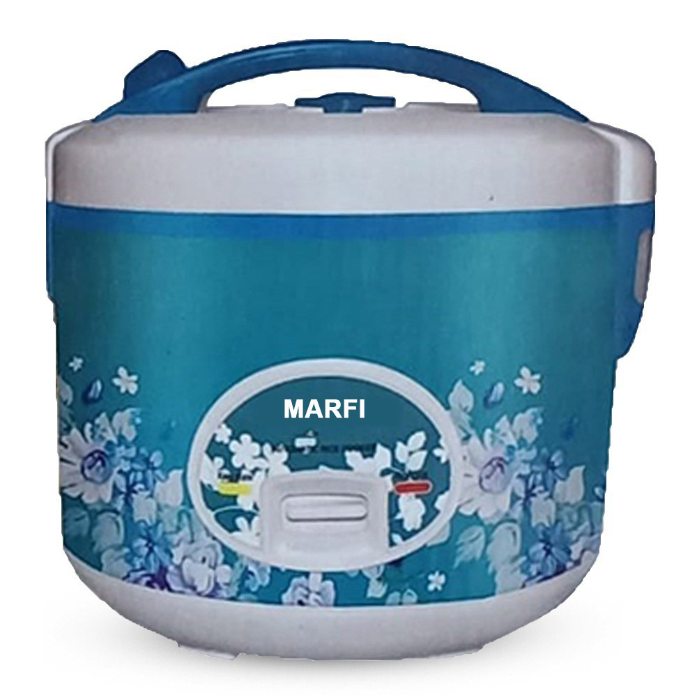 This vibrant blue Marfi Metal Rice Cooker is a stylish and functional addition to any kitchen. With a capacity of 1.8 liters, it can cook up to 3 cups of rice at a time, making it perfect for small families or individuals. The durable metal construction ensures even heat distribution for perfectly cooked rice every time. The non-stick inner pot makes cleanup a breeze, and the keep-warm function ensures your rice stays warm and ready to serve.