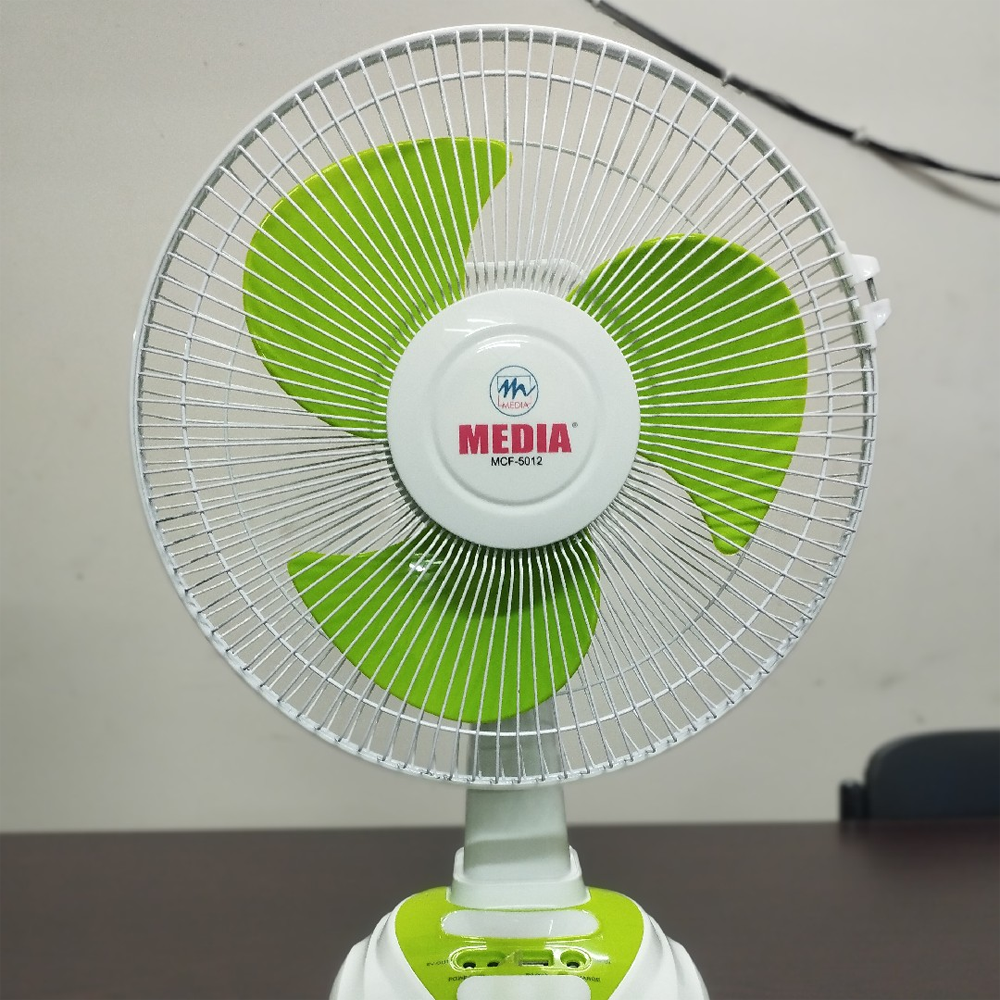 The Media Rechargeable Desk Fan is a compact, portable, and energy-efficient cooling device designed for convenience and comfort. With its rechargeable battery and powerful airflow, this fan is perfect for home, office, or travel use, ensuring you stay cool anytime, anywhere.