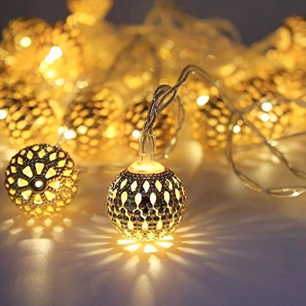Metal Ball Fairy Decorative Lights - 20 Pcs - Golden is a beautiful and elegant way to decorate your home for any occasion. They are perfect for weddings, parties, holidays, or just for everyday use. The lights feature 20 golden metal balls that are strung along a thin wire. The balls are evenly spaced and emit a warm, inviting glow. The lights are easy to install and can be used in a variety of ways. You can hang them from the ceiling, drape them over furniture, or even use them to create a unique centerpiece. The lights are also battery-powered, so you can place them anywhere without having to worry about finding an outlet.