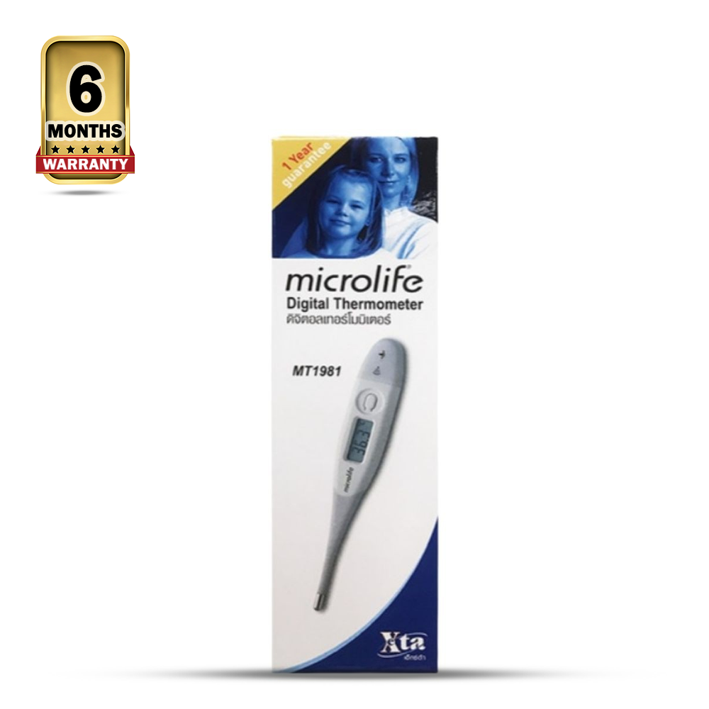 The Microlife MT1981 is a digital thermometer produced by Microlife Corporation, a medical device company known for manufacturing various healthcare products, including thermometers. The thermometer likely has a digital screen that displays the temperature reading in numbers, making it easy to read.