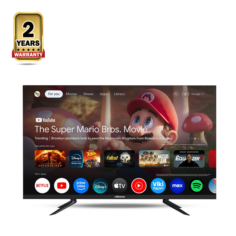 The Minister MI43Q35FVB is a 43-inch frameless smart LED television that offers a range of features, including voice control, a sleek design, and access to popular streaming services. Frameless Design: The TV's slim bezels create a modern and immersive viewing experience. Voice Control: Control the TV hands-free using voice commands. Smart TV Functionality: Access a variety of streaming apps and content through the built-in operating system. Full HD Resolution: Enjoy clear and detailed images with a resolution of 1920 x 1080 pixels. Multiple Connectivity Options: Connect various devices to the TV using HDMI, USB, and other ports.