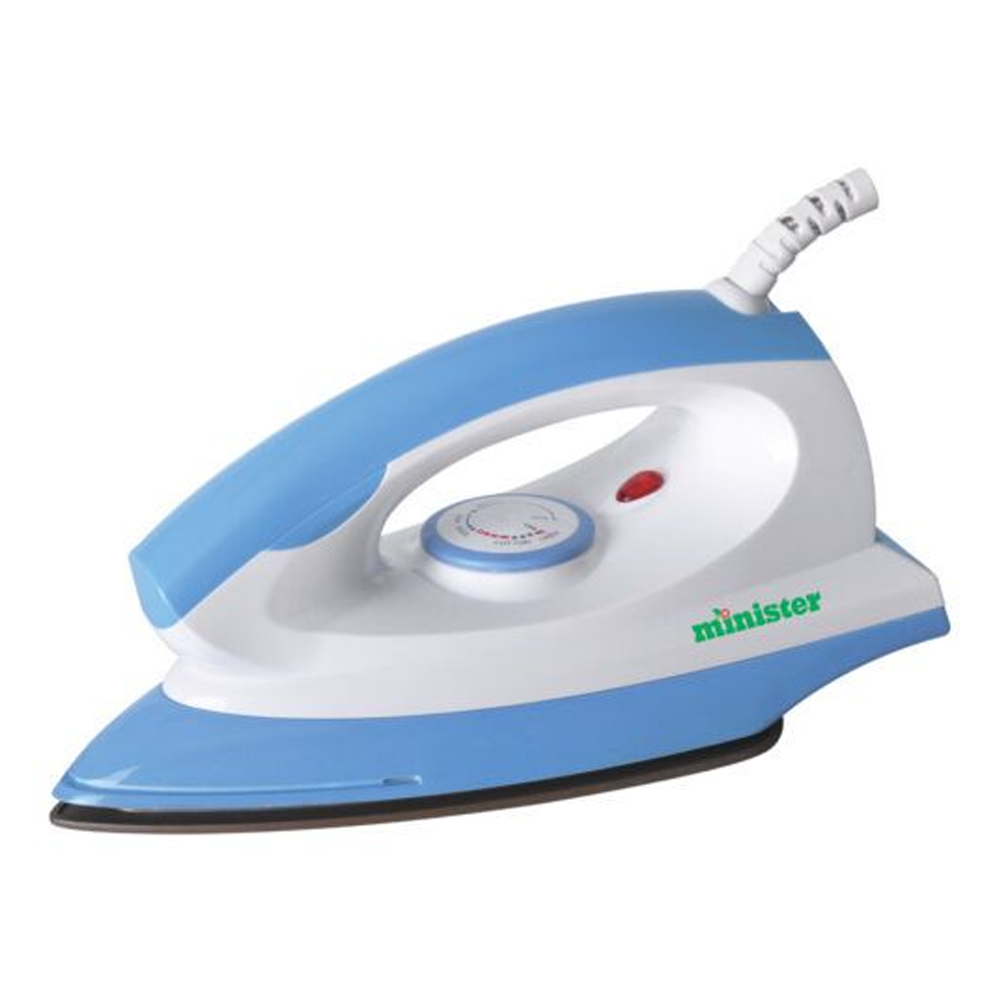 The Minister YPF-631 Dry Iron is a 1000-watt iron with a non-stick soleplate and temperature control disc. It has a big cable length and a V-shape body for sleeve ironing. It is also very affordable.