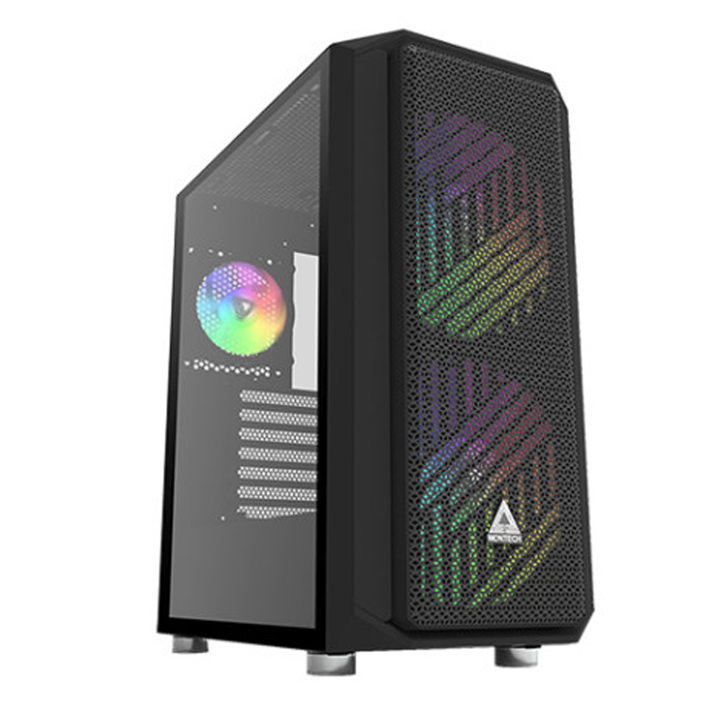 Montech AIR X ARG Black ATX Mid Tower Gaming Case comes with a Unique Diamonded Mesh design. This Unique design case featured with Fine metal mesh front , Dustproof fine, Mesh dust screens, Compact ATX, Double USB 3.0 + Single USB 2.0, 200mm ARGB Fans x 2 + 120mm ARGB Fan x 1, Controller. In this case, All pre-installed fans have already connected with the controller. It is designed with a large surface metallic Diamond Mesh front with air intake mesh and two 200mm ARGB fans. Here, Included another 120mm ARGB fan for a total of three fans and a maximum air intake area for incredible cooling performance and the aesthetics to match. Highly Functional Ports, I/O Design The Montech AIR X Gaming Case, the Controller ports comes with 3 pin (ARGB) and 4 PIN (PWM), That can control all three included ARGB fans. This gaming case also supports up to 6 fans in total. This Gaming case also comes with USB3.0 x 2, USB2.0 x 1. The I/O is at the side. Diamond Mesh Front and Dust Resistance The Montech AIR X Gaming case is designed with a Beautiful Metallic Diamond Mesh Front panel, that creates a unique visual and enhances airflow. The Fine Mesh dust screens for the front Diamond Mesh, and magnetic top and the screens provide excellent dust resistance. it is easy to remove and cleaned, because it does not has any connecting wires with the front panel.