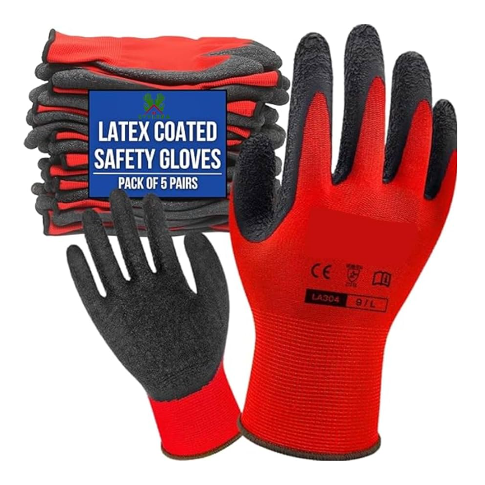 Red Nylon Rubber Coated Nitrile Glove, for Industrial, Construction, Household, Cycling, Bike Riding, Gardening, Kitchen Work Safty Hand Gloves, Red & Black Colour ( 1 Pair)