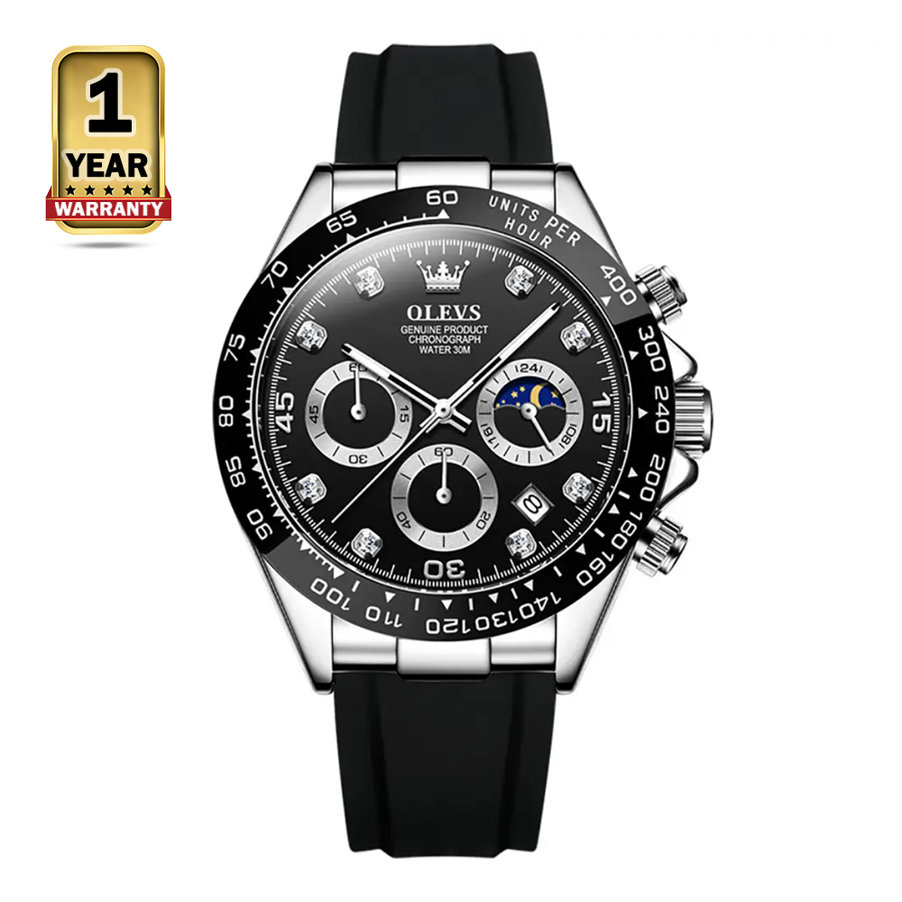 It is a stylish and sporty watch that features a round black dial with silver hands and hour markers. The watch has a stainless steel case and a silicone strap with a buckle clasp. It is water resistant to 30 meters, making it suitable for light swimming and showering. The watch also has a chronograph function, The Olevs 2875 Stainless Steel Chronograph Sport Wrist Watch For Men is a great choice for men who are looking for a stylish and sporty watch that is water resistant and has a variety of features.