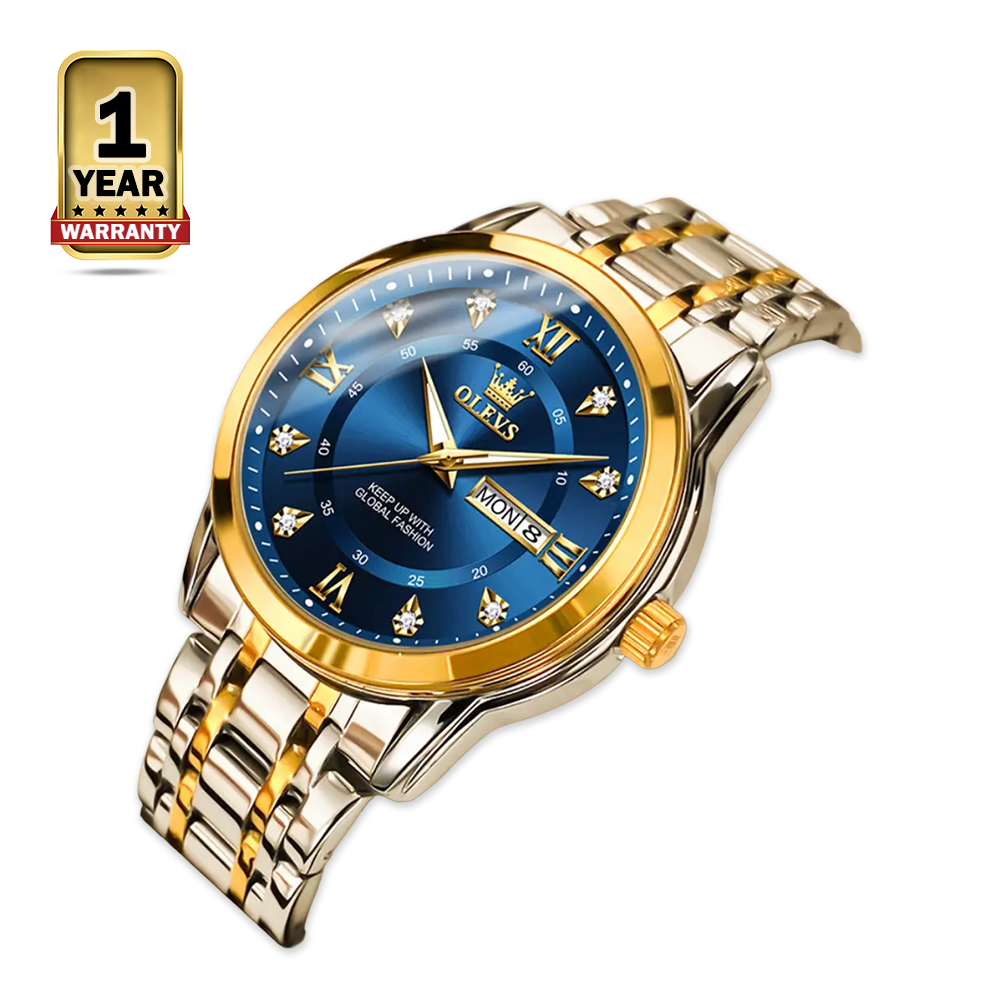 The OLEVS 5513 Stainless Steel Quartz Wristwatches for Men is a stylish and functional timepiece that comes in three colors: silver, golden, and blue. It features a stainless steel case and a leather strap. The watch also has a date window and is water-resistant up to 30 meters. The OLEVS 5513 is a good option for those looking for a stylish and affordable watch with a classic look.