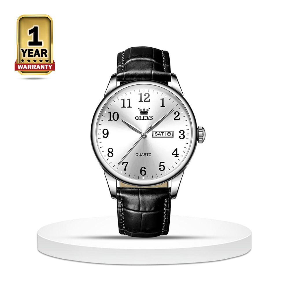 The OLEVS 5535 Leather Quartz Wristwatch for Men. It is a stylish and functional timepiece that features a silver Leather strap. The watch also has a date window and is water-resistant up to 30 meters. The OLEVS 5535 is a good option for those looking for a stylish and affordable watch with a classic look.
