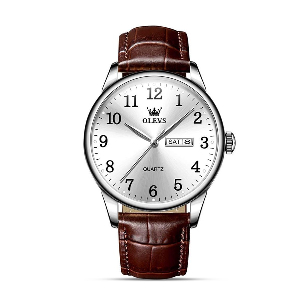 The OLEVS 5535L is a stylish and affordable wristwatch for men. The watch features a classic analog display with a durable PU leather strap that is comfortable to wear and adds a touch of sophistication to the watch. It is a versatile watch that can be worn with a variety of outfits, from casual to formal.