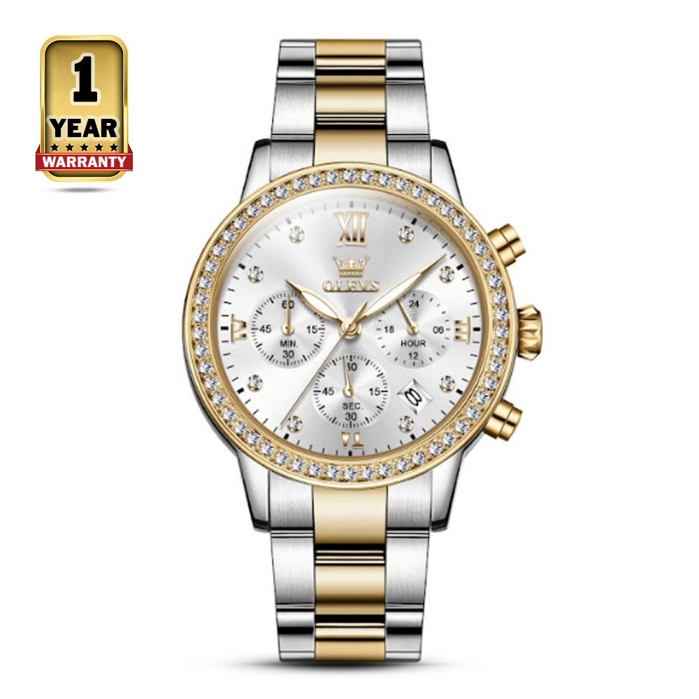 The OLEVS 9933 is a stainless steel waterproof business quartz wristwatch for Women. It features a sleek, round design with a luminous coating and original quartz movement. The watch is 3Bar waterproof, making it suitable for everyday wear and light water activities. It also has a date window and a week display. This is a stylish and functional watch that is perfect for women who are looking for a dressy watch that can also be worn for everyday use. It is well-made and durable, and it comes with a one-year warranty.