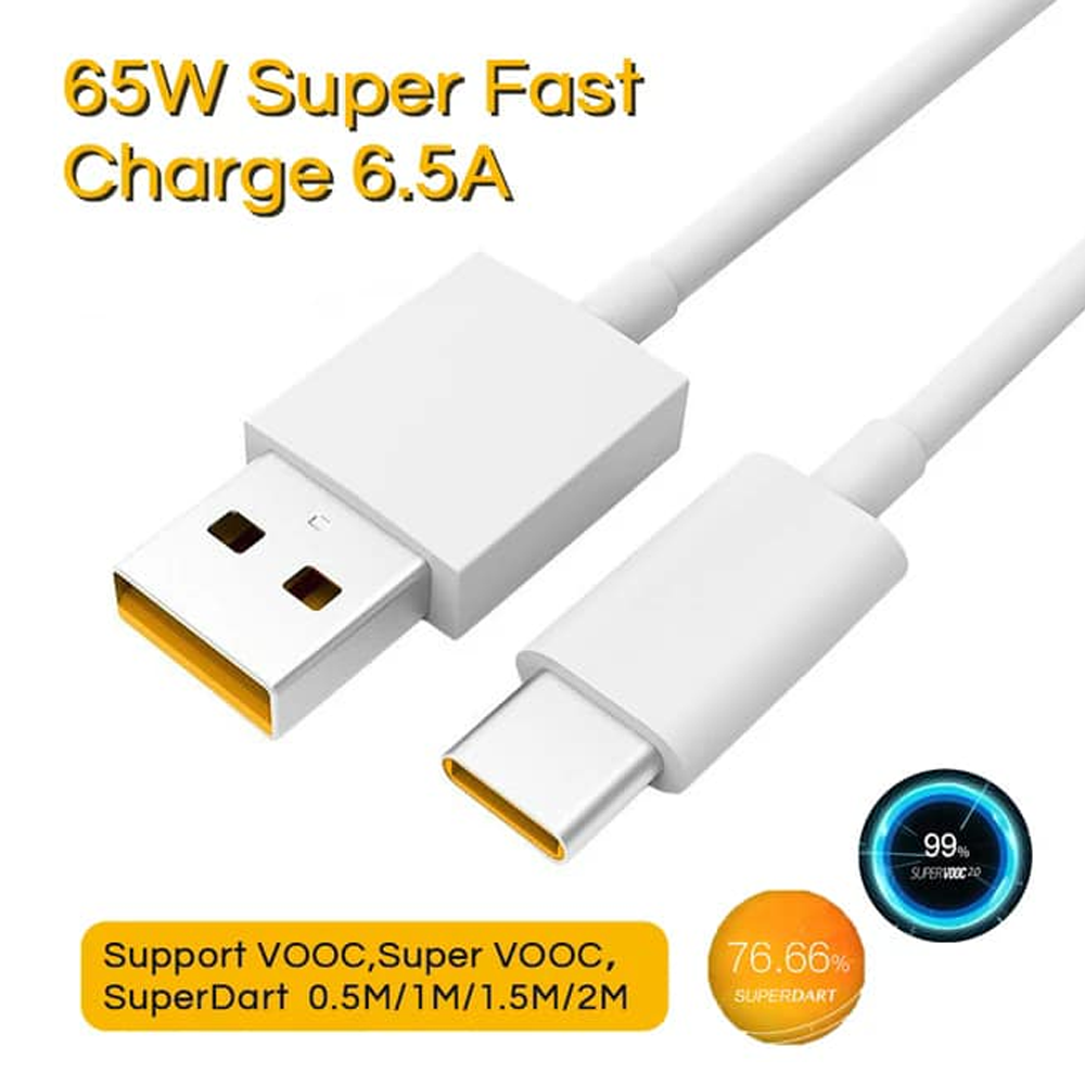 The Oppo 65W SuperVOOC Type-C Fast Charging Cable is a high-quality charging cable designed to deliver fast charging speeds for compatible Oppo devices. It's a crucial accessory for anyone who wants to quickly charge their Oppo phone.