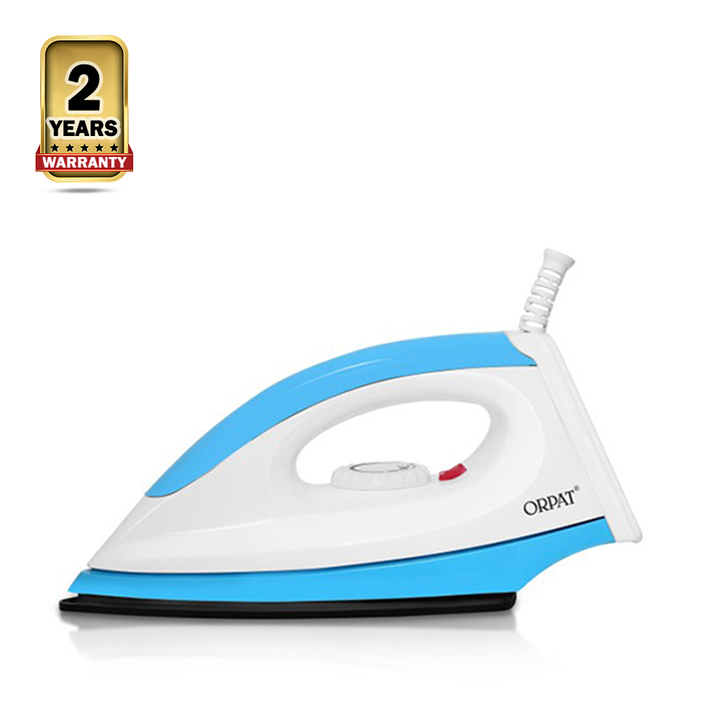 The Orpat OEI-167 is a 1000-watt dry iron that comes in a royal blue color. It has a lightweight and compact design, making it easy to maneuver and store. The iron also has a non-stick coated soleplate that glides smoothly over fabrics, preventing wrinkles and snags.