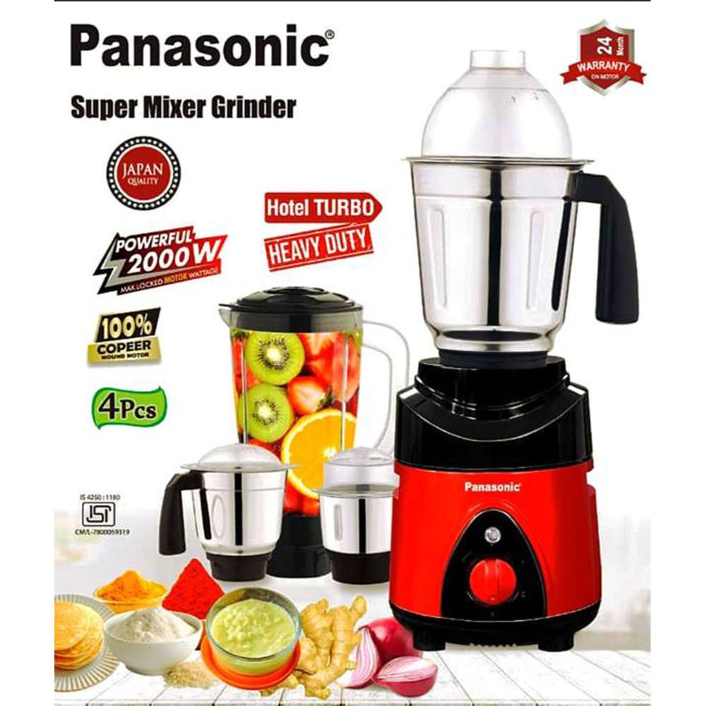 The Panasonic Hotel Turbo Mixer Blender is a heavy-duty 4-in-1 appliance designed for professional and home use. With a powerful 2000W copper motor and 4 multipurpose jars, it handles blending, mixing, grinding, and juicing with ease. Built for durability and performance, this mixer is perfect for hotels, restaurants, and large households.