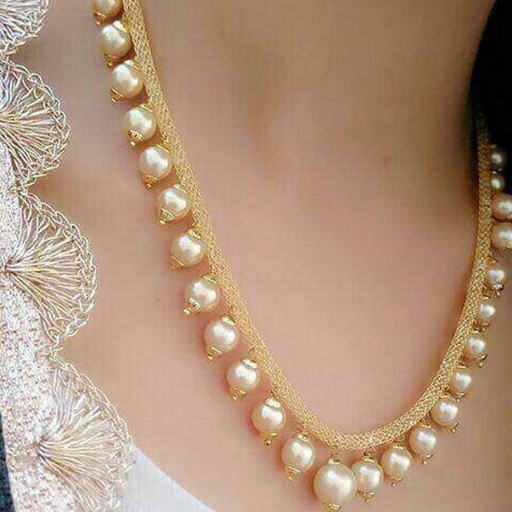 This necklace set sports a traditional look with its beautiful textures. It is polished flawlessly in gold tone for a delicate touch making it perfect for all festive occasions. This piece of jewelry comes with the Jewels Galaxy assurance of quality and durability.