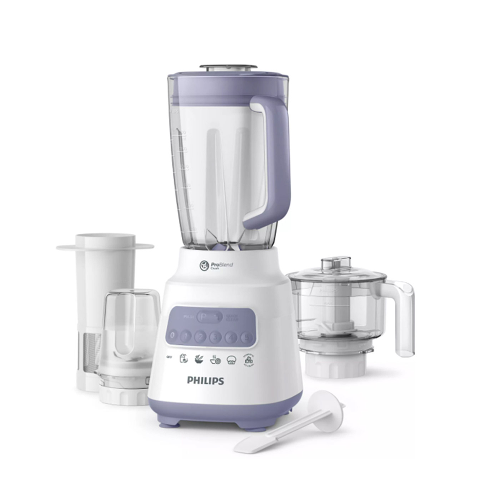 Blend 40% finer and crush the ice perfectly Enjoy the finest smoothies with ProBlend Crush technology. Our unique 4-star blade and energy-efficient 700W motor make perfect smoothies every time. Its powerful ice-crush button transforms hard ice into smooth blends, twice as fast. 5 preset settings for easy and reliable results With 5 speed settings, designed to provide you with the perfect texture from smoothies to soups and sauces., Perfectly crushed ice, 2x faster The powerful ice-crush function, supported by the ProBlend Crush technology results in perfect, snowy crushed ice for ice-cold smoothies and refreshing desserts, 2x faster. With the Quick clean button for fast & easy cleaning With the Quick Clean button for fast and easy cleaning of the blender.