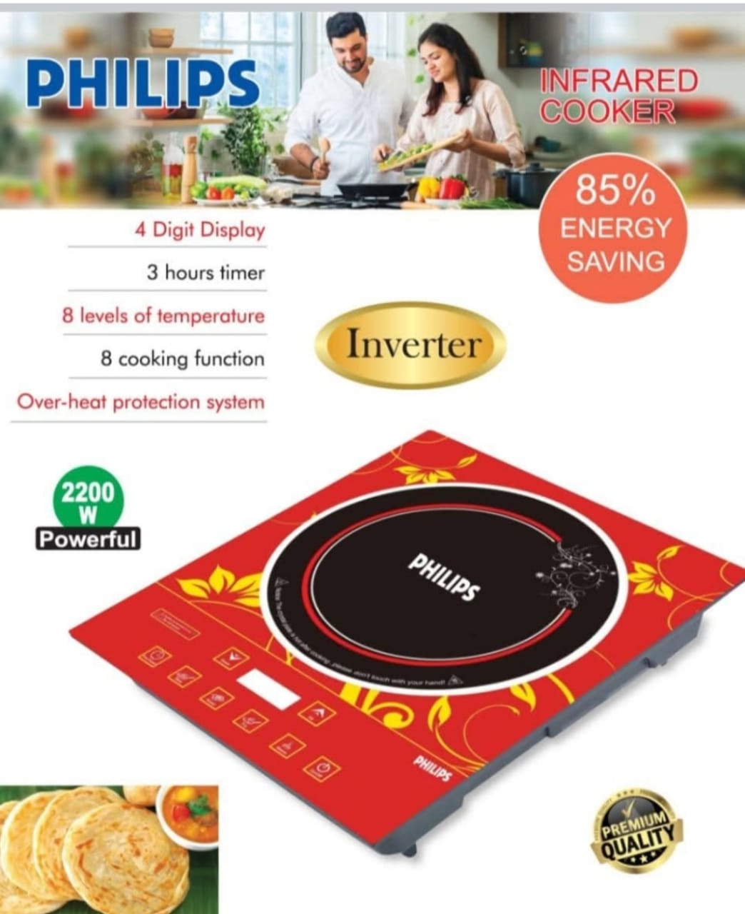 The Philips Infrared Cooker is an electric cooker that uses infrared heat to cook food. It has a power of 2200W, which means that it can cook food quickly and evenly. The cooker also has a number of features that make it easy to use, including a touch control panel, a Digital Display, Auto Shut off, Overheat Safety Protection, a timer, and a keep warm function. Digital Display. It is Environmentally friendly and Easy to clean.