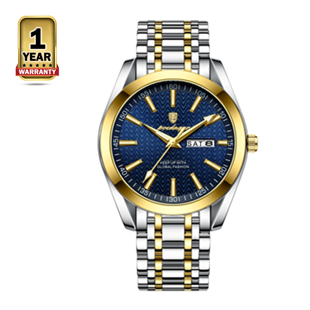 The POEDAGAR 962 is a men's wristwatch advertised as both casual and business appropriate. It features a stainless steel case, a quartz movement, and a water resistant design. It also has luminous hands and a date function.