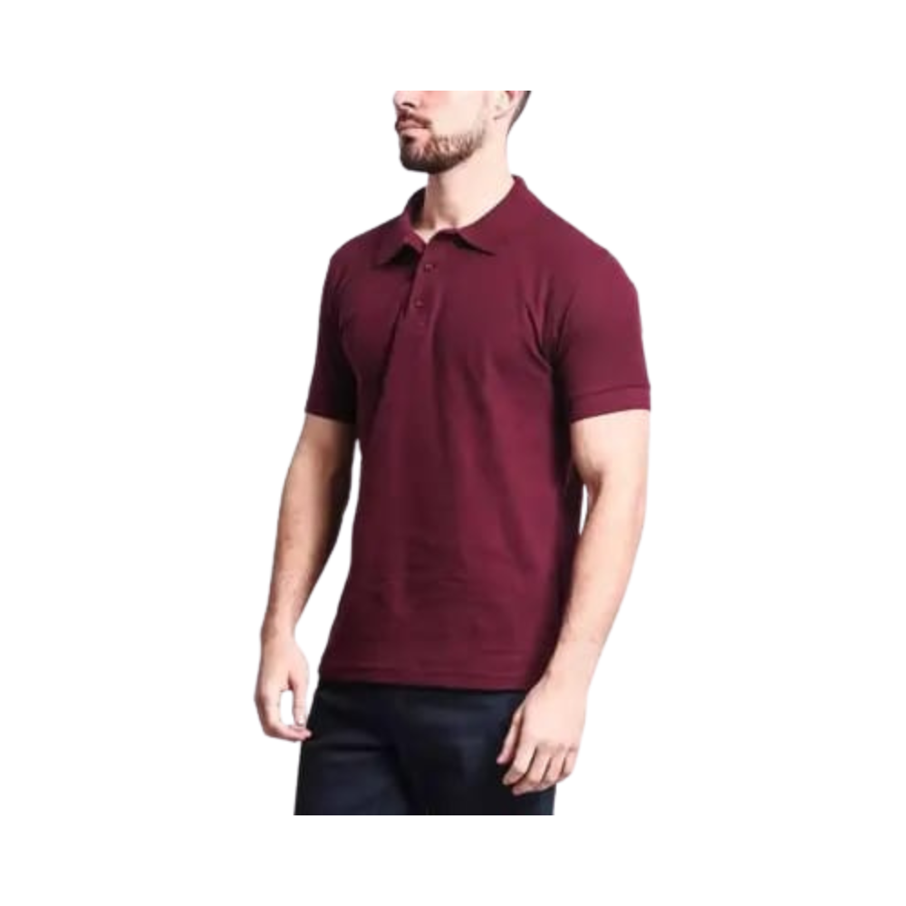 A polo shirt is a short-sleeved, pullover shirt with a collar, placket, and two or three buttons. It's typically made of knitted cotton, such as pique knit, interlock knit, or pima cotton, but can also be made from other fibers like silk, merino wool, synthetic fibers, or jersey material. Polo shirts are often called golf or tennis shirts, and are often worn as part of a smart, casual uniform.