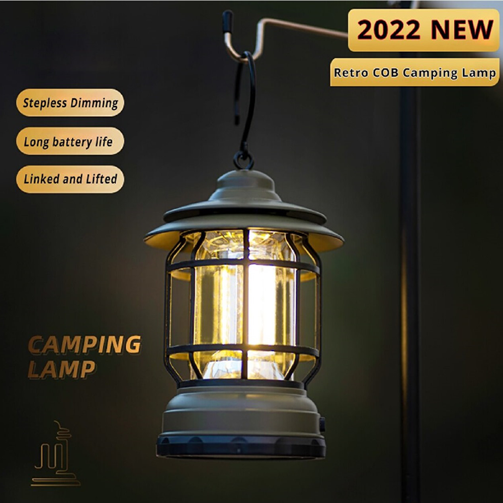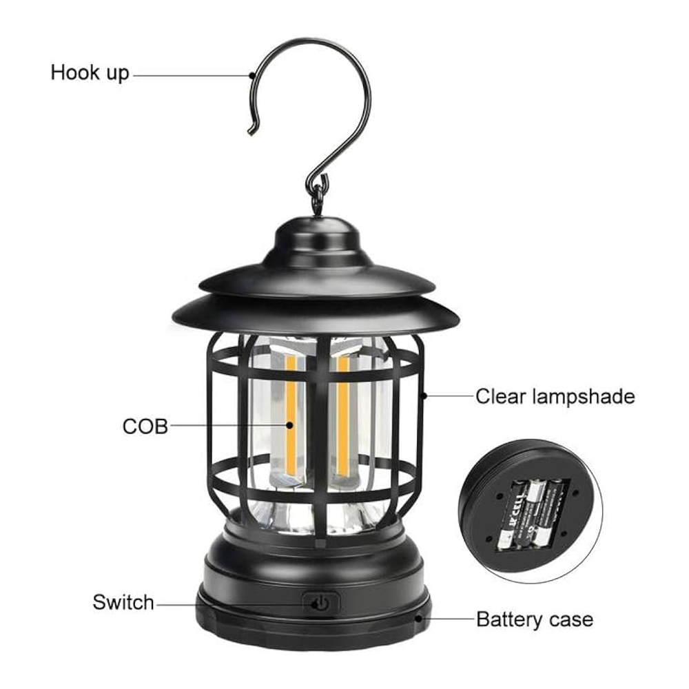 1. Retro camping lights, and exquisite workmanship, add a classic element to your tent. 2. High-quality LED lamp beads, high brightness, 360° lighting, soft and not dazzling. 3. There are 2 lighting modes high light and low light, and one-key switching to meet different lighting needs. 4. Small and light, with hook, easy to hang, perfect for camping, picnic, fishing, etc.