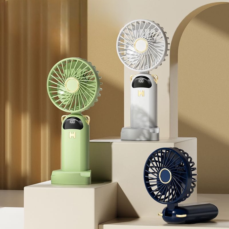 rechargeable portable 5-speed fan with LED display, perfect for on-the-go cooling. This USB fan is designed for computers and laptops, providing a convenient and adjustable airflow with its 5-speed settings.