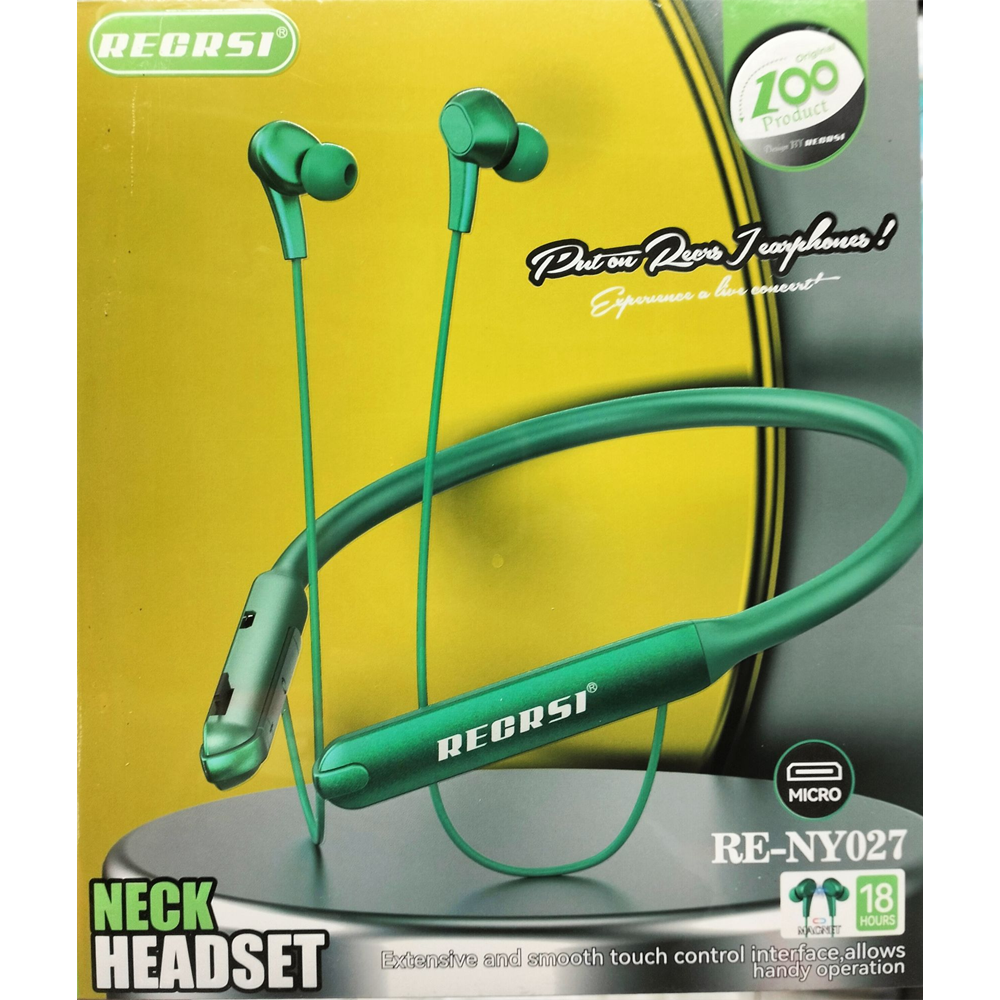 Sports Bluetooth Bass Neckband Headset - Multicolor Brand Name: RECRSI Model: RE-NY027 Battery: 400mAh rechargeable battery Talking time: up to 18hrs Charging time: 1-2 hrs Charging Type: USB Type C Bluetooth: Wirelessly strems music from bluetooth device Use for Sports: Portable during sports transmission Distance: 10-15 M Bass: Bass port for superior sound In ear design: Comfortable to wear Extensive and smooth touch control interface Allows Handy operaton Made in China.