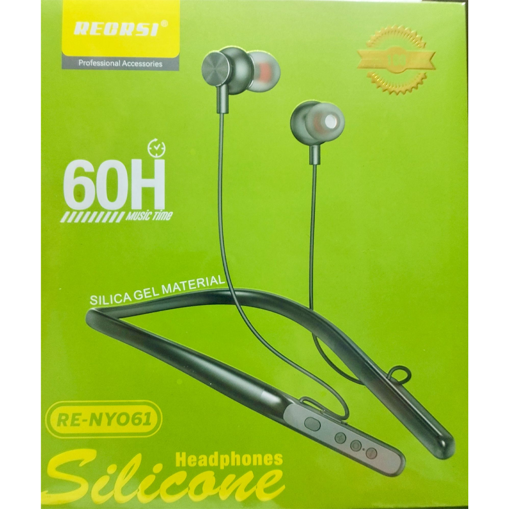 RECRSI NY061 Silica Gel Material 60H Bluetooth Neck Band - Multicolor Brand : RECRSI Model: RE-NY061 Colour : Black, White Wireless Version: 5.3 Standby time: 10 days Duration time: 60Hrs Transmission distance : 10-15M Charging time : 2 hrs Charging type : Type C, USB Battery: 500mAh rechargeable battery In Ear design: comfortable to wear Strong Bass port for superior sounds Portable during Sport Waterproof headphones Handsfree calls Made in China