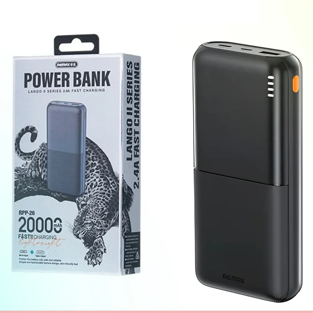 The Remax RPP-26 Lango 2 Series is a high-capacity power bank designed to keep your devices charged on the go. With a substantial 20,000mAh battery capacity, it ensures you have ample power to charge your devices multiple times before needing a recharge.