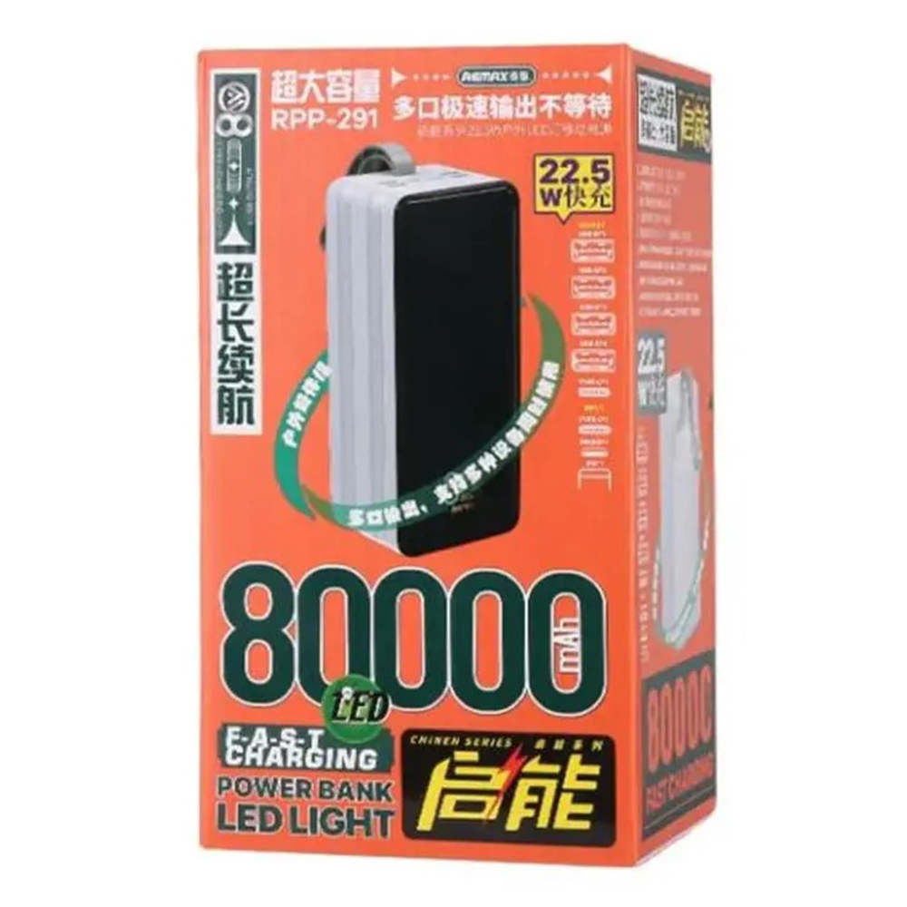 The Remax RPP-291 QC Fast Charging Power Bank with LED Light boasts a massive 80,000mAh capacity, enough to charge your smartphone multiple times over or even power your laptop. It also supports fast charging, so you can quickly get your devices back up and running.