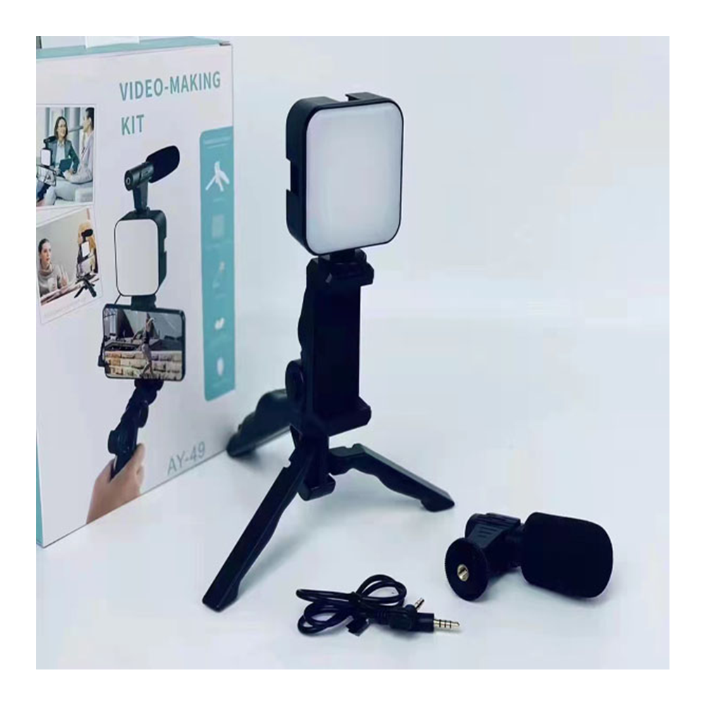 The AY-49 is a vlogging kit that includes a microphone, LED fill light, and mini tripod. It's designed to improve the audio and video quality of your smartphone recordings. This type of microphone is known for its ability to capture high-quality audio. The AY-49's microphone has a cardioid pickup pattern, which means that it is more sensitive to sounds coming from directly in front of it. This can help to reduce background noise.