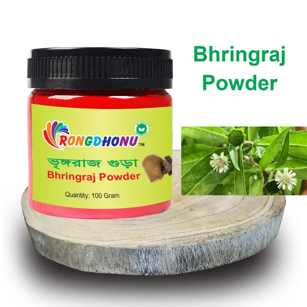Rongdhonu Hair Treatment Bhringraj Powder is a hair care product made from the leaves of the bhringraj plant, also known as Eclipta alba. Bhringraj has been used in traditional medicine for centuries and is believed to have a range of health benefits, including promoting hair growth, preventing hair loss, and improving hair texture and shine.