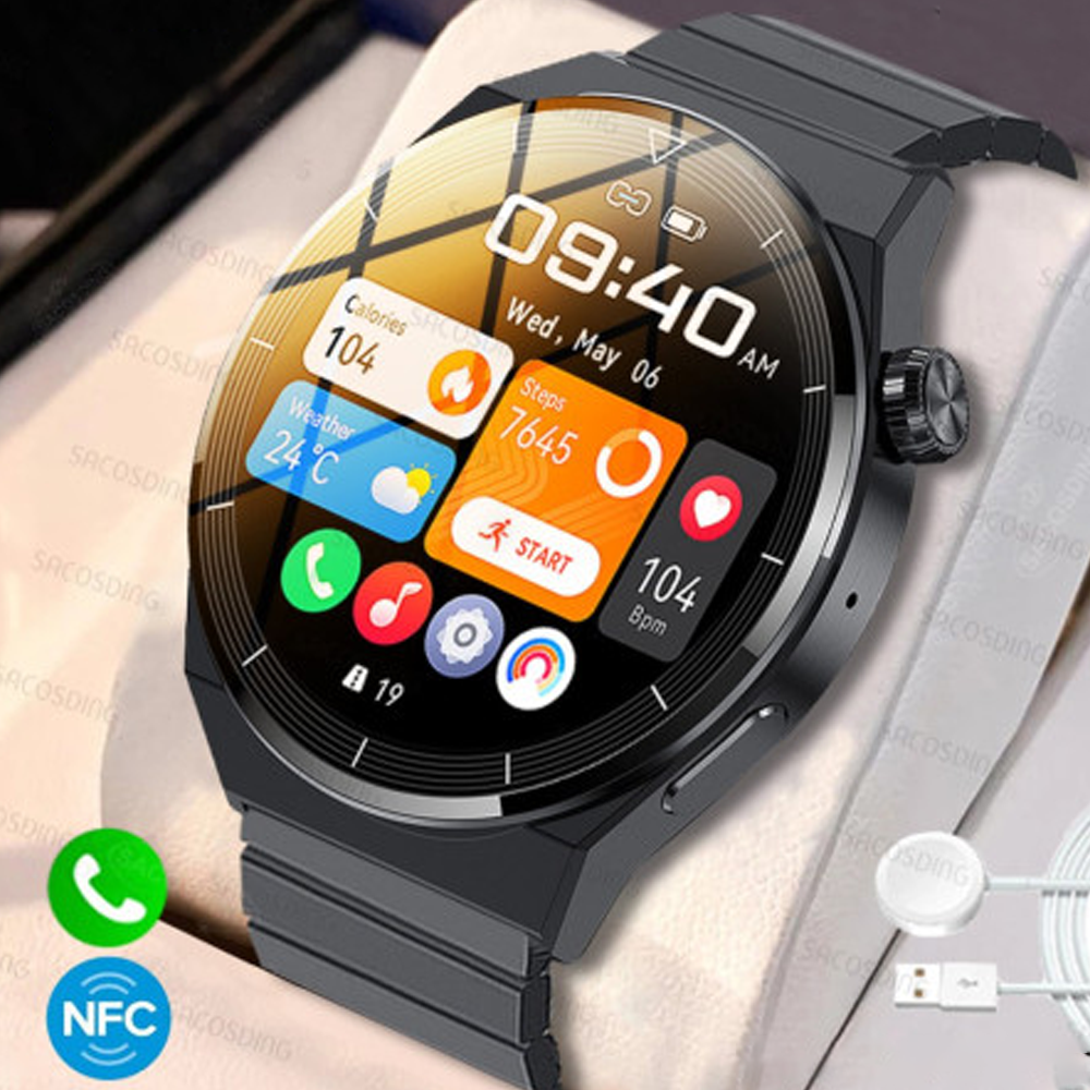 The SACOSDING HK46 Bluetooth Call Full Touch Screen Smart Watch With Extra Silicon Belt - Black is a stylish and functional smartwatch that is perfect for people who are looking for a way to stay connected and track their health and fitness goals. It features a full-touch screen, Bluetooth calling, and a variety of health monitoring sensors. The watch is also water resistant to 5ATM, making it suitable for swimming and other water activities.