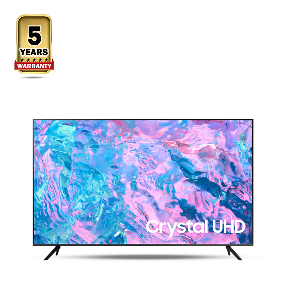 SAMSUNG UA43CU7700 Crystal 4K UHD Smart LED TV is a 43-inch 4K UHD (3840 x 2160) LED TV with Crystal Processor 4K technology for enhanced picture quality. It has a slim design with an AirSlim bezel for a more immersive viewing experience. It is powered by a Crystal Processor 4K that optimizes the image quality for any content. It also supports HDR10+, HLG, and Dynamic Crystal Color for a wider range of colors. It has 3 HDMI ports, 2 USB ports, and a LAN port for connectivity. It also has built-in Wi-Fi and Bluetooth for wireless streaming. It runs on the Tizen operating system, which gives you access to a variety of streaming apps, including Netflix, Amazon Prime Video, and Disney+.