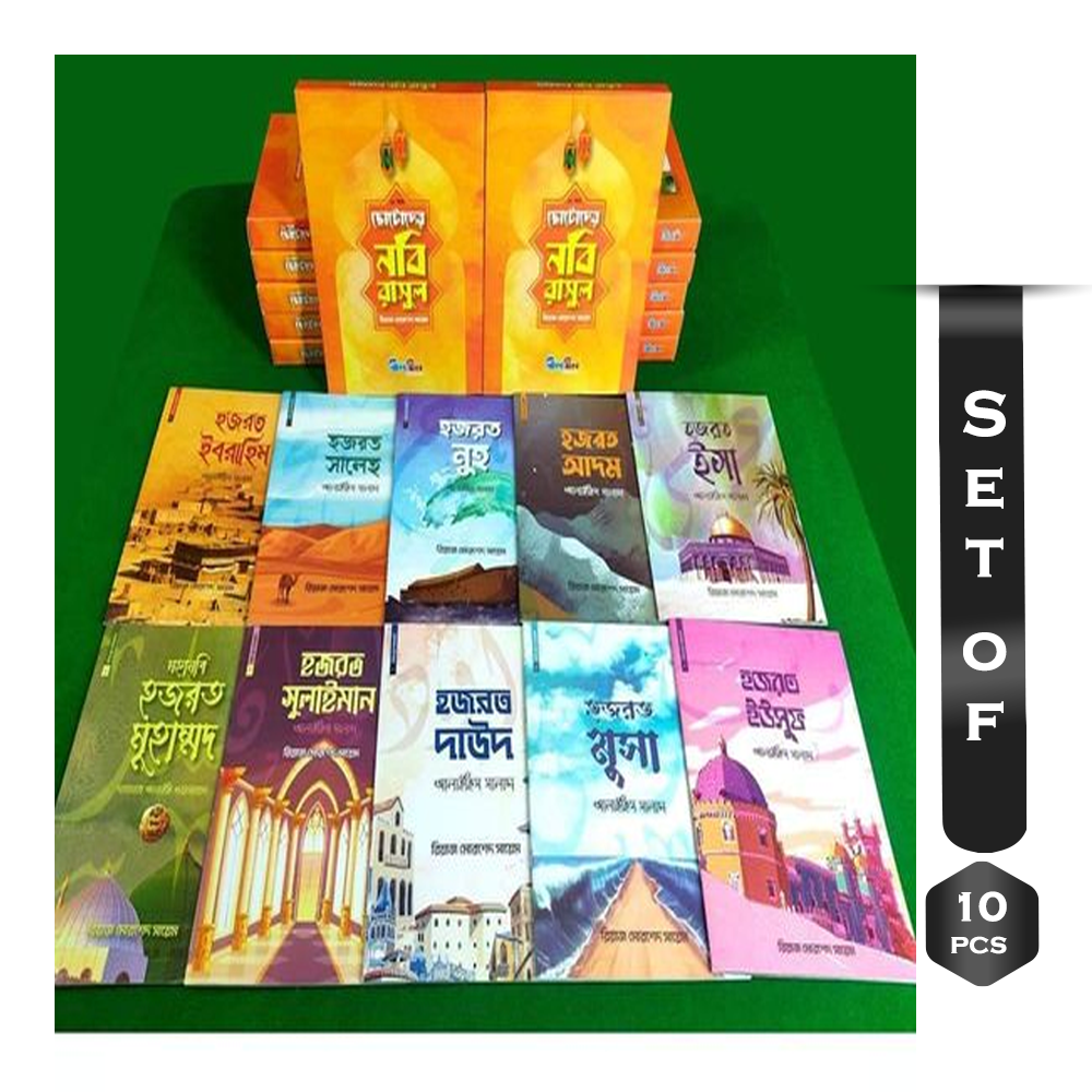 This wonderful series written by author Riyaz Morshed Sayem includes short biographies of 10 Prophets from Hazrat Adam Alahis Salam to Hazrat Muhammad Sallallahu Alaihi Wa Sallam. These excellent books will keep children away from the bad addiction of technology. Nabbi will help build life in ideals. লেখক রিয়াজ মোরশেদ সায়েমের লেখা চমৎকার এই সিরিজটির মধ্যে রয়েছে হজরত আদম আলাহিস সালাম থেকে মহানবি হজরত মুহাম্মদ সাল্লাল্লাহু আলাইহি ওয়া সাল্লাম পর্যন্ত মোট ১০ জন নবি-রাসুলের সংক্ষিপ্ত জীবনী।চমৎকার এ বইগুলো শিশুদের প্রযুক্তি নির্ভর খারাপ আসক্তি থেকে দূরে রাখবে। নববি আদর্শে জীবন গড়ে তুলতে সাহায্য করবে।