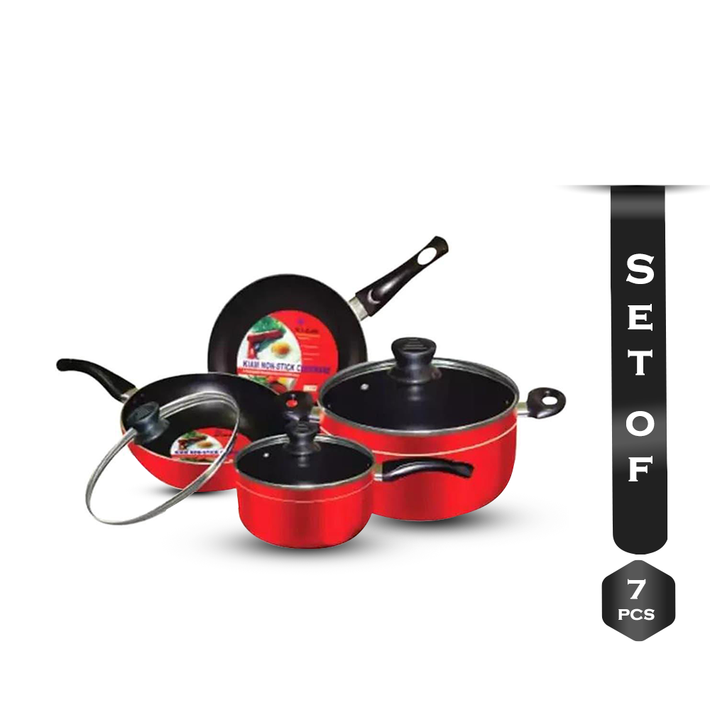 Non-stick cookware set typically includes a collection of pots, pans, and other cookware items with a non-stick coating on the cooking surface. This coating is designed to prevent food from sticking to the surface, making it easier to cook and clean up afterwards.