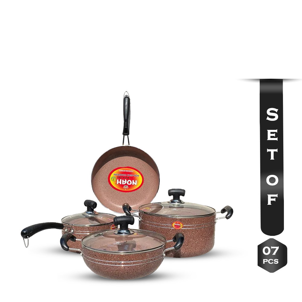The new NOAH marble coated set is made of marble coating from Greblon Germany. Get this complete set that meets all your cooking needs in the kitchen. We use high-quality non-stick coating from Greblon, Germany to reduce the oil used for cooking and make your food more healthy. The non-stick coating is firmly locked into the base for long-lasting durability. The heavy bakelite handle used in the product does not heat up easily. The exterior paint is high heat resistant. NOAH Group is one of Bangladesh's oldest and most respected business conglomerates in the Cookware and kitchen appliances sector. We take pride in the quality of our cookware.