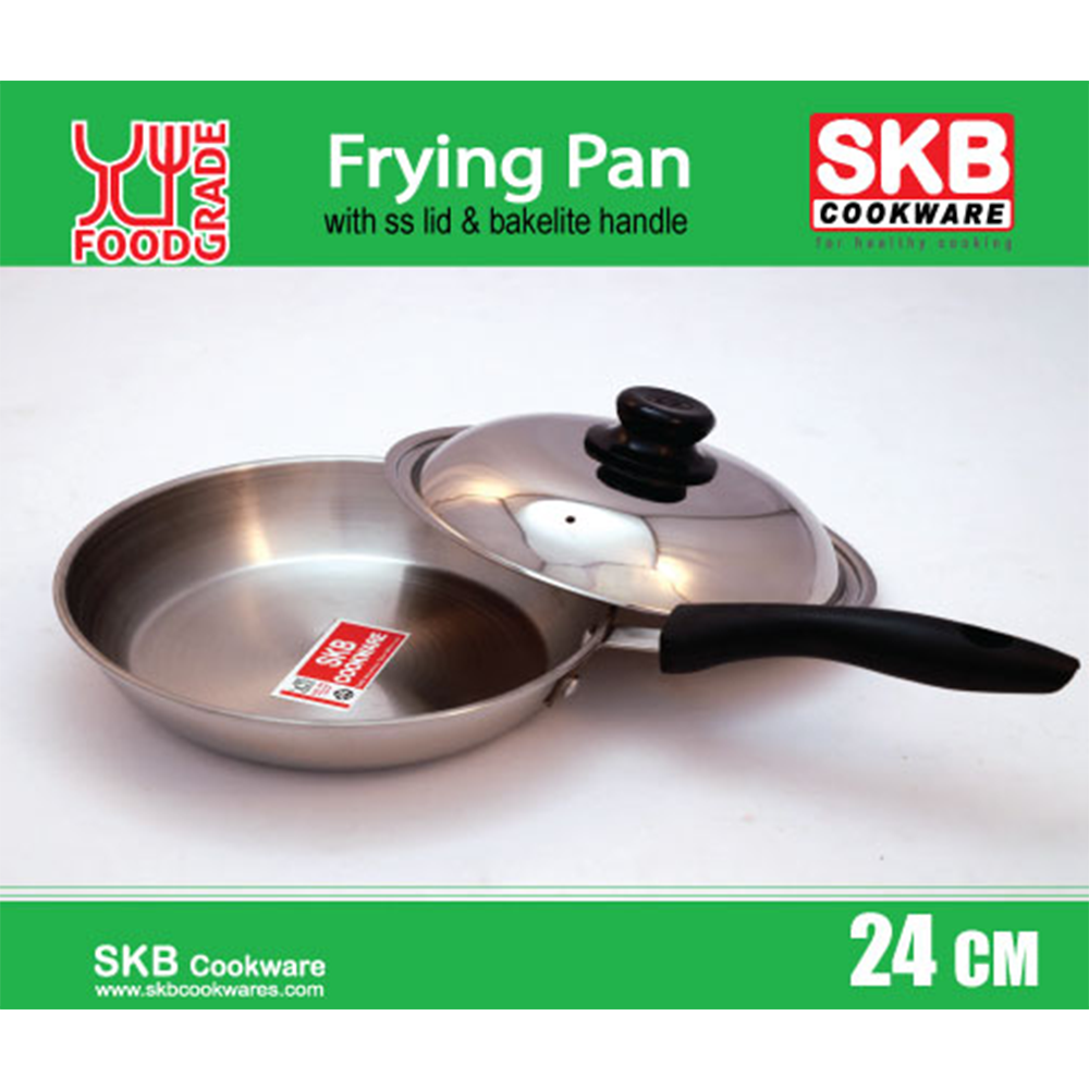 Stainless Steel Frying Pan With SS Lid & Bakelite Handle. Made By Food Grade Materials ( SUS 304). 3 Layer Bottom. 30% Energy And Time Saving. Doesn't Get Resty And Easy To Clean. Suitable For All Kind Of Stoves. Most Reliable For Healthy And Hygienic Cooking.