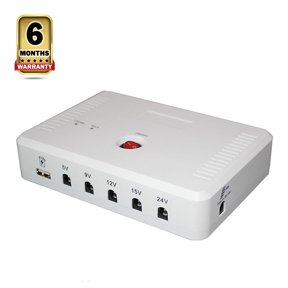 The SKE SK616 mini UPS has a built-in 15600mAh rechargeable battery that can supply power to multiple devices at the same time, making it perfect for homes and small businesses. With five output ports, it can easily connect to a router, modem, camera, or other DC equipment. The USB port can also be used to charge a mobile phone or another device. The UPS is easy to use and comes with a seven-day replacement warranty. This is an ideal online DC power backup system for wifi internet seamless Online Gaming & Streaming. Therefore it can power up WIFI Router/ADSL Router ONU Switch ensuring 8-15 hours of seamless internet during load-shedding.