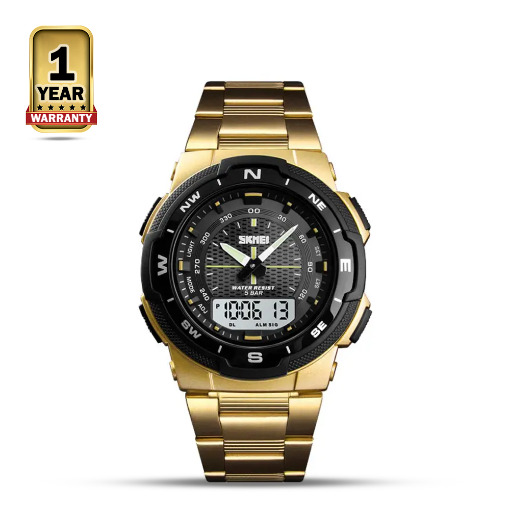 The SKMEI 1370 is a stylish and functional watch designed for men. It features a dual time display, making it a great choice for travelers or those who frequently communicate with people in different time zones. The watch is made of stainless steel and has a water resistance of 3 ATM, It is a stylish and functional watch that is perfect for everyday wear.