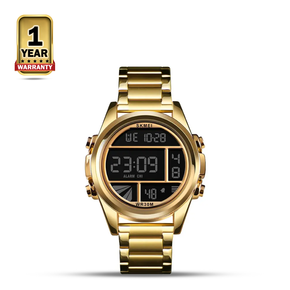 The SKMEI 1448 is a digital watch designed for men with a black stainless steel case and band. It has a sporty and stylish design that is perfect for everyday wear.