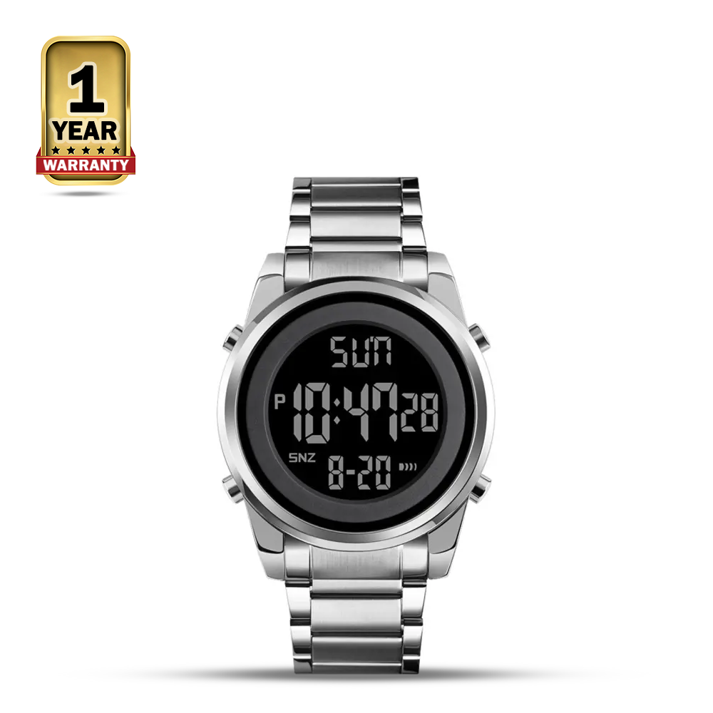 The SKMEI 1611 is a digital watch designed for men with a stainless steel case and band. It has a sporty and stylish design that is perfect for everyday wear.