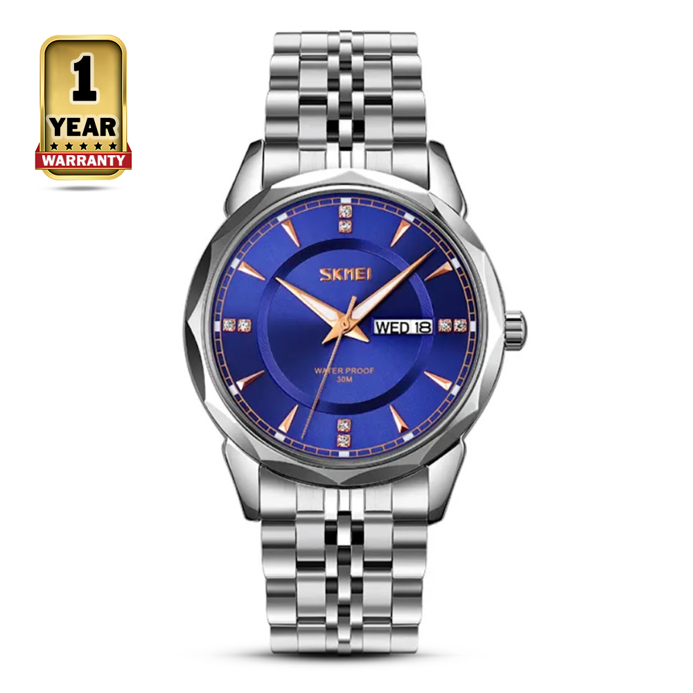 The SKMEI 9268 is a men's casual wristwatch with a stainless steel strap and a quartz movement. It has a round dial with black and silver accents, and it displays the time, date, and week. The watch is 40mm in diameter and 12mm thick, and it has a 30M water resistance rating. It is a stylish and functional watch that is perfect for everyday wear. This is a great watch for men who are looking for a stylish and functional timepiece. It is affordable, durable, and easy to care for.