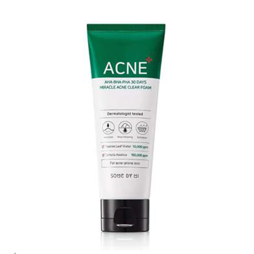 The Some By Mi AHA BHA PHA 30 Days Miracle Acne Clear Foam is a facial cleanser designed to target acne-prone skin. It contains a combination of exfoliating acids and soothing ingredients to clear breakouts and improve the overall texture and appearance of your skin.