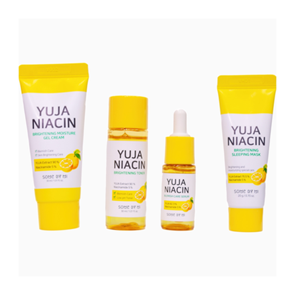 The SOME BY MI Yuja Niacin 30 Days Starter Kit Set is a great way to try out some of the brand's most popular Yuja Niacin products in travel-sized portions. It is designed to brighten and improve the appearance of your skin. Brightening