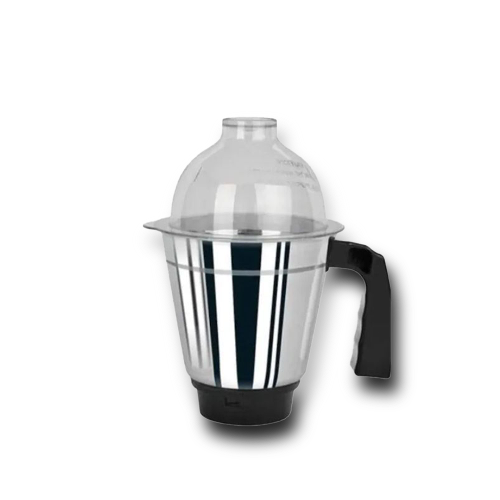 The Stainless Steel (SS) Jar for the blender is a high-quality, A Grade accessory suitable for all types of SS Blenders. It has a polished surface finish that adds to its aesthetic appeal. The jar is made of stainless steel, known for its durability and resistance to rust. It has a round body shape, which is a common design for blender jars as it facilitates efficient blending. The jar has a capacity of 1.2 liters, making it suitable for preparing a variety of dishes. This SS Jar combines functionality and style, making it an excellent addition to your kitchen appliances.