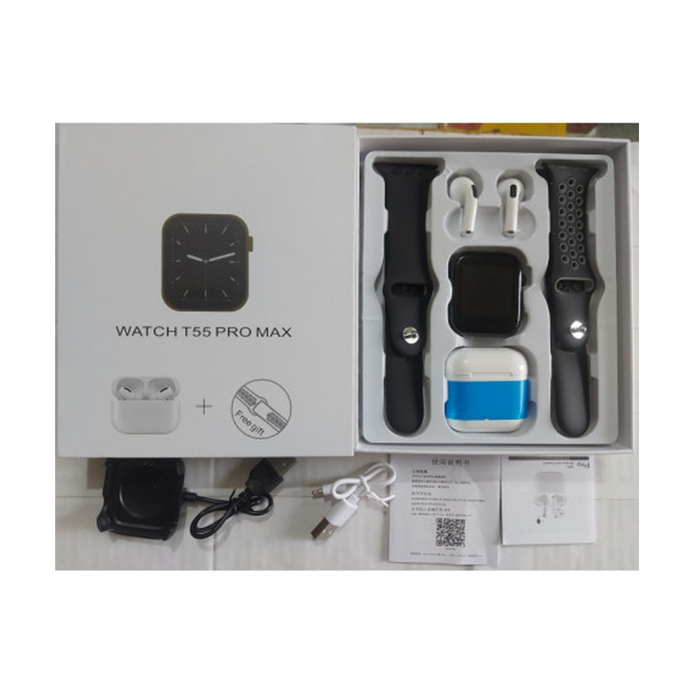 T55 Pro Max smart watch lets you receive or reject calls and comes with other fitness functions including heart rate, blood pressure, and calorie loss. You can run this smart-watch for 2-3 days on a full charge. It has a built speaker and can control pause/play / next/previous audio music with this watch. It has sports, health information, track, pedometer, sports steps, calorie consumption, exercise mileage record, sleep detection, heart rate, Bluetooth call, and alarm clock functions. This smartwatch comes with a pair of Earbuds.