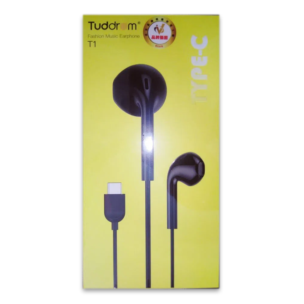 The TUDDROM T1 Type-C Earphones are a pair of earphones that connect via a Type-C USB connector. They are available in a black color variant. Please note that as an AI, I don't have real-time information on specific product models or availability beyond my September 2021 knowledge cutoff. It's recommended to check with retailers or online marketplaces for the most up-to-date information on the TUDDROM T1 Type-C Earphones in black.