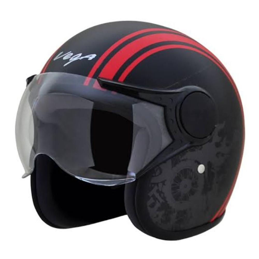 The Vega Jeet Half Face Bike Helmet in Black is a popular choice for riders looking for a balance of style, comfort, and affordability. Protection against head injuries. Protection against face injuries. Improvement in your vision and hearing. Increased visibility for others. It keeps your head warm and dry.