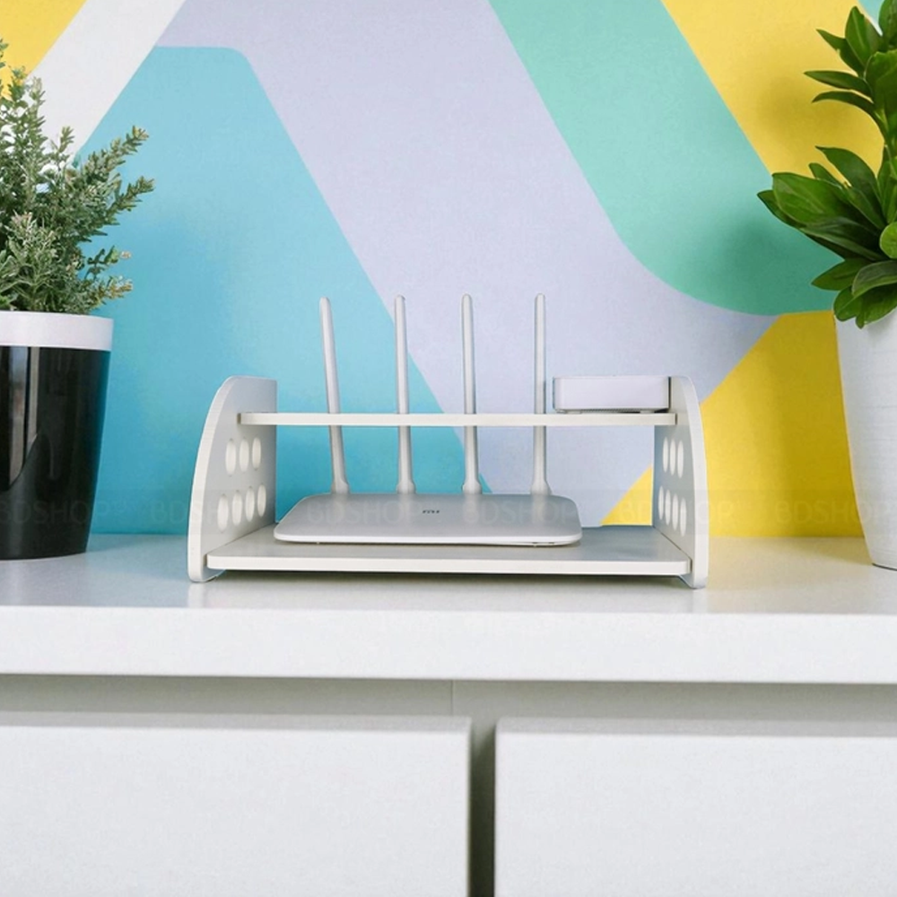 Wall Mounted Router Stand – Keep your space neat and organized! This multi-purpose stand holds routers, modems, TV boxes, projectors, or speakers with multi-layer storage, clean wire management, heat vent system, and a durable stylish design—perfect for home or office.