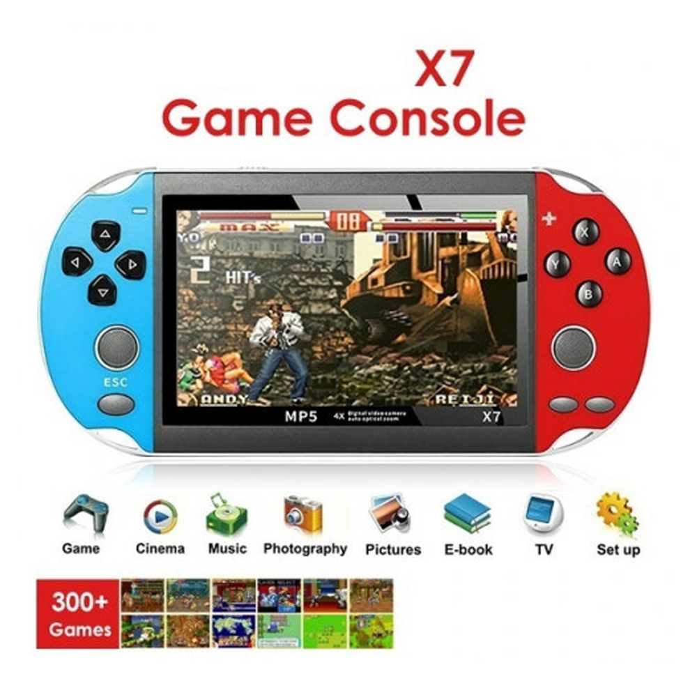 X7 Handheld Game Console has a 5-inch high-speed TFT screen, with 16 million colors. This game player has a built-in 2500mAh lithium battery that charges in 2-3 hours and lasts for 2-4 hours. This device supports video output AVI, FIV, RM, RMVB, MP4, 3GP, ASF, MPEG, DGT, MOV, and MPE. It supports RMVB AVI MP4 3GP and other formats to watch movies or videos anytime.