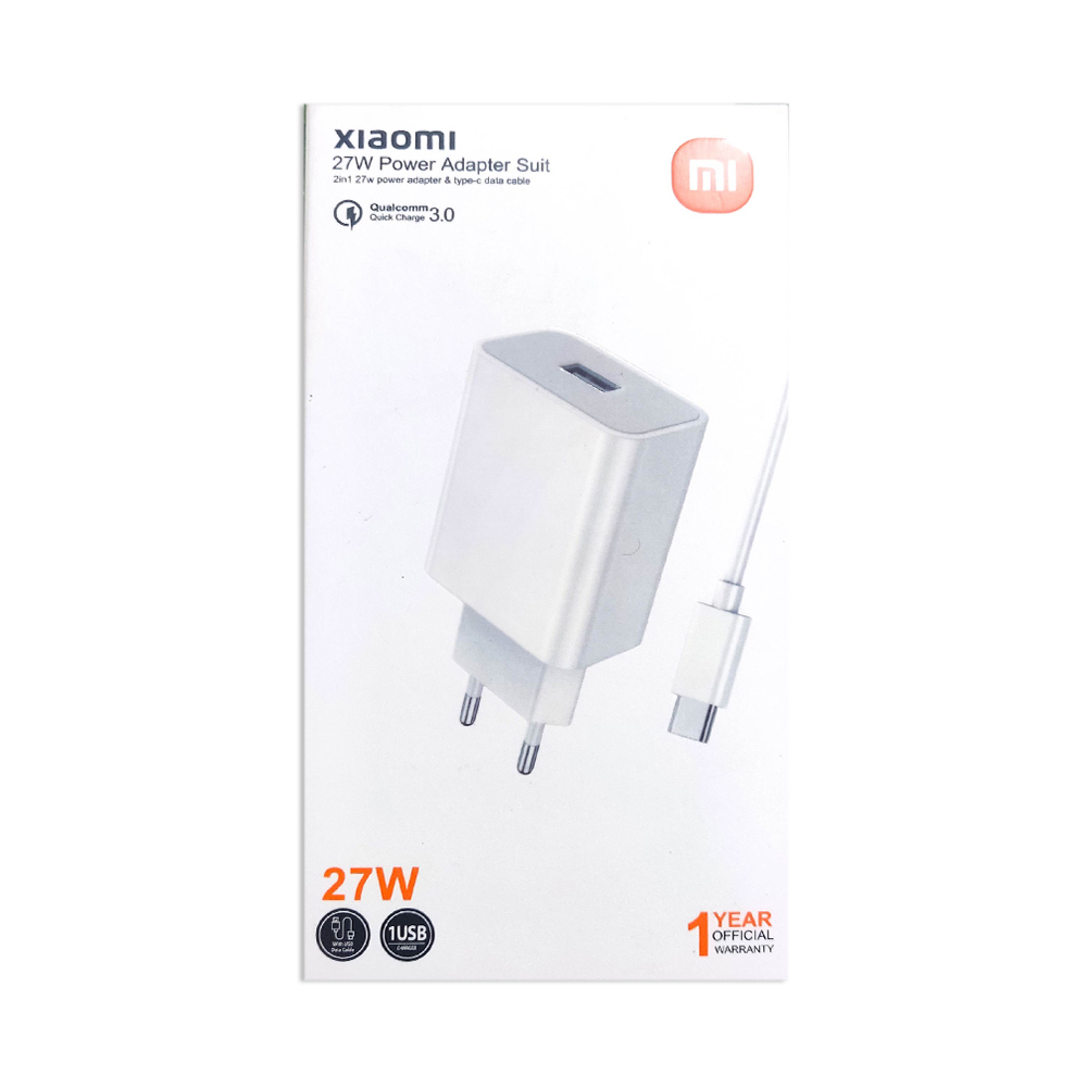 The Xiaomi 27W Fast Charger Power Adapter in white is a high-speed charging solution for Redmi and Xiaomi Mi Type-C devices. The compact design of the charger makes it easy to carry in your bag or pocket, making it a convenient accessory for travel, outdoor activities, or everyday use. The white color gives the charger a sleek and modern look that is easy to match with any style or decor. The charger supports fast charging technology, allowing you to charge your devices quickly and efficiently. With a maximum output of 27W, it can charge your device in a relatively short time.